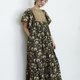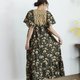 后扣宽短袖拼接长洋装_黑黄花 - 洋装/连衣裙 - 棉.麻 绿色