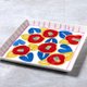 磁器 縦21.2cm横21.2cm高さ2cm 純白の白磁に上絵具で赤い椿花と、青と黄色の葉を描いた正方形の器です。 真っ白な地が発色を良くし、画像で見るよりも実物は透き通った発色のような気がします。 産地/制作方法 日本