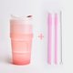 △一开即喝 硅胶开盖 卡榫设计 可将吸管卡在杯盖上并收进杯子中