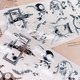 需自行裁切外型,輕柔地移除透明膜,此時轉印貼紙會連同透明膜一起被剝離起來,將其覆蓋在目標物上,用手(或是信用卡)將其推平後,慢慢地撕開透明膜即可。