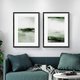 以水墨般的笔触描绘静谧远景,水绿与灰白交融,仿佛遥望天际的湖泊,带来无尽的想像与心灵的宁静。