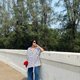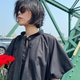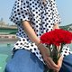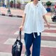 3.打成一个大蝴蝶结。搭配喇叭裤。越美丽越时尚