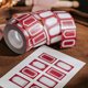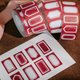 石榴红色的框框跌倒了 把怀里抱着的苹果也摔出心事来 单张尺寸|1.5 x 2.5 cm 每卷标签数量|500张 图案循环|8个图案为一循环 材质|模造纸,可书写