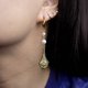 材质:不锈钢镀金耳圈、24K/18K金镶嵌花纹、合金镀金壳、淡水珍珠