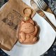 以原色植揉牛皮仿造招财猫造型鸡蛋糕手缝制成