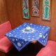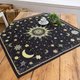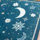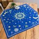 This textile tablecloth is inspired by the night sky with the moon and stars shining brightly.
