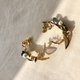 树叶编织的皇冠上点缀着大大小小缤纷的花朵,色泽夺目的水钻、透亮的珍珠、网状的叶片交织在桂冠叶上