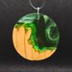 瀑布森林鹿吊坠 吊坠由优质松木和优质树脂制成。 吊坠直径为3.8*1.4。 黑编织皮绳,标准长度 50 厘米,适合所有性别和年龄。 该产品是手工制作的。可能不完美 颜色取决于每种型号屏幕的显示。 非常适合作为礼物 您甚至可以自己佩戴。