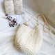 【好日手作】Handmade。手工韩国棉线编织米白色圆底侧背斜背包