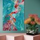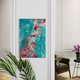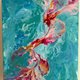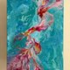 原创抽象压克力画 • 流体艺术 墙壁挂画 25x30cm 蓝绿色、白色、金色