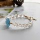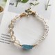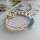阿斯特兰迪亚白月光海蓝宝花手链带你进入梦幻的奇幻国度。由白月光石材料打造,8mm和5mm的大小呈现层次感,搭配海蓝宝花装饰,散发出优雅的氛围。以金属线绕线编织和OT扣制作,让你展现出独特的魅力和幻想色彩。