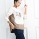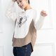 电绣皇冠羽毛爱心异材质拼接上衣 / 米色拼接咖啡色 透气舒适,秋冬皆宜