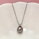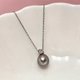 这颗大溪地黑珍珠呈现出玲珑娇小的水滴形,最小直径9.6mm,有多处微瑕微生长纹,但瑕不掩瑜,社交距离不可见。纱织小姐为其配置了晶体锆石的 S925银14k注金戴妃款扣头,并赠送一条s925银链子,佩在颈间,就像灰姑娘散发出来的光芒,内敛而清新。珍珠在天然的海水里生长,经历岁月的磨洗和磨难,终于玲珑剔透,身上必有岁月的印记,所谓不完美才是天然美。纱织小姐选取通孔珍珠配置,使其成为馆内价格最为亲民的大溪地黑珍珠之一。日常佩戴无压力,你值得拥有。