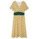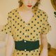 - 复古V领的设计,恰到好处的V字,隐约漏出锁骨。撞色腰节设计,在视觉上做到足够吸晴,勾勒出纤细A4腰展现傲人身材曲线。单排扣设计,纯天然两眼贝壳扣,贴心的小细节,彰显品质。