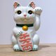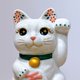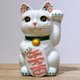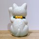 招财猫表面使用花结晶釉,展现出独特的结晶效果,增添了艺术感和层次感。釉面光滑,透出自然的光泽,使整体看起来更具质感。清水烧的招财猫不仅是家居装饰品,更是一件高雅的艺术品,展示了精湛的工艺技术和文化内涵。
