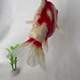 这是一件非常写实的“更纱和金”作品。本作品原是为了 2019 年于晴空塔“墨田水族馆”举办的企划展所特别制作,以当时馆内实际饲养的金鱼为原型打造。其最大的亮点(Charm Point)就是左脸颊上的心形花纹。 这是我挑战以羊毛毡展现极致拟真质感的心血之作。鳞片部分采用布料加工,呈现出如同真实鳞片般的立体光泽。由于作品分量感十足,也非常推荐给喜爱锦鲤的藏家。 因制作程序极其繁琐且耗时,未来已无再次制作的计划,仅此一件。 尺寸:宽 25cm × 高 18cm