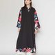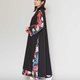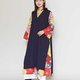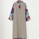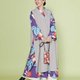 两侧的开衩让内搭的鲜艳图案隐约可见。