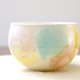 借由微微米白色的雾面釉,以及宛如春日色彩的三色釉彩,
