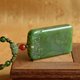 天然纹理菠菜绿碧玉卷云纹无事牌,器型厚桩,尺寸达50mm×30mm×10mm,敦实大气。色泽呈浓郁菠菜绿,整体色调统一却因天然纹理呈现深浅绿色变化,纹理如云海翻涌,碧海翻浪,正反两面各有景致,似两幅天然水墨碧色画卷,这份双面纹理的精美与难得,是其独特亮点。玉牌八面平整,每边又带圆弧倒角,触感莹润冰沁,温润细腻,仅点缀极少极少的黑点,品质上乘。