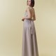 转身的优雅‘露背长洋装’ ◆ 露背设计与蝴蝶结绑带是背面的焦点 ◆ 前开口用率性光泽感的银色拉链点缀 ◆ 挺版的布料创造出俐落的廓形长洋装