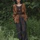 褲身上的銀杏葉或聚或散,深淺交疊如季節更迭的密語。