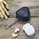 三角型零钱包/蓝牙耳机收纳/小物收纳等。御饭团造型,令人爱不释手。使用进口植鞣牛革制作,双头钥匙圈鈎头,可以随意吊挂或快速拆卸。