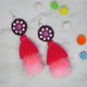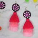 - These colorful statement bohemian earrings are made with delicate cotton tassel and tribal embroidery fabric. Lightweight. Nickel-free. The Tassel length is 2.5 inches. The total length of the earring is 3.5 inches.