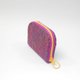 整个短夹共有两纸币夹层、6张信用卡夹、一个零钱袋及两个空间可放发票等小物。包里为蓝紫色布料。