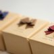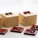 牛皮纸盒、牛皮色包装纸、纸丝填充物 、手工制蝴蝶结。