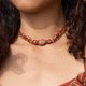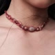 那是一段我无法回头的时期,身心深陷创伤与忧郁的深渊。我试着用各种方式让自己撑住,有一天,我在静心冥想中,手中握着一颗偶然相遇的石榴石原矿,她成为了一道红色柔软的光,保护、陪伴与唤醒我内在渴望疗愈与重生的声音。为了把她作为守护石戴在身边,我开始接触蜡线编织。