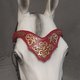 Handmade Leather browband for horses with silvered metal decoration. Red brow band horse pony made of genuine saddlery leather. Browband stitched on the hand. Trim sewn by hand.
