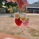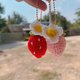 编织钥匙圈“草莓雏菊” 鲜艳的红,搭配白色籽粒与绿叶,整体散发着清新可爱的气息。
