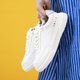 MIKA 休闲鞋采用 KIBO 招牌苹果皮革,从农业废弃物中提取,100% 纯素。全球有超过三分之一的农作物被丢弃,KIBO 从榨汁农场的苹果废料中提取出植物纤维,并获得美国农业部和 PETA认证 ,不含动物成分。每双鞋子从榨汁业产生大约 15 个苹果渣回收制成。与之前的 #AppleKicks 相比,这双鞋更轻便、百搭,还采用了最受欢迎的经典全白色。