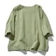 宽松亚麻五分袖上衣 休闲风格 透气舒适 日常穿搭 黄绿色 230402-3