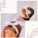 这是一组带有柔和色彩的发带与围兜套组,散发着迷人的气息。