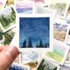 原始水彩艺术天空 - 纸上迷你绘画 - 微型绘画 - 小墙壁艺术 2 x 2 英寸